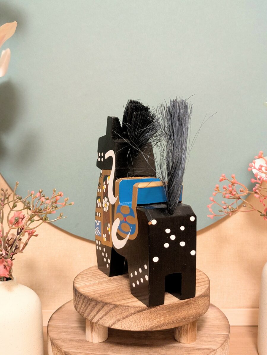 Découvrez ce magnifique cheval en bois japonais, une pièce artisanale pleine de caractère et de poésie, parfaite pour apporter une touche d’authenticité et de bonne augure à votre intérieur.