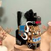 🔹 Son pelage noir profond sert de toile de fond à ces motifs colorés, tandis que de véritables crins – fixés à la queue et à la crinière – lui donnent vie et mouvement.