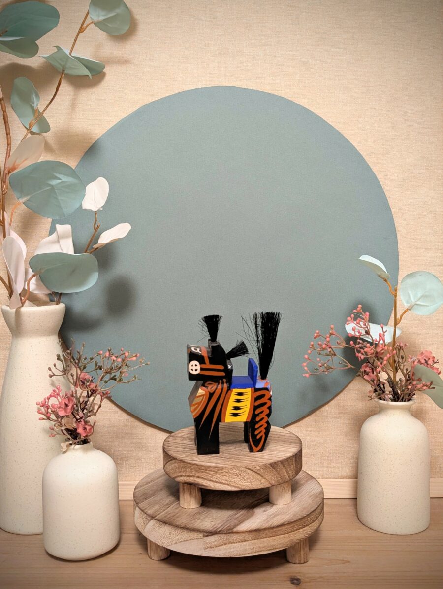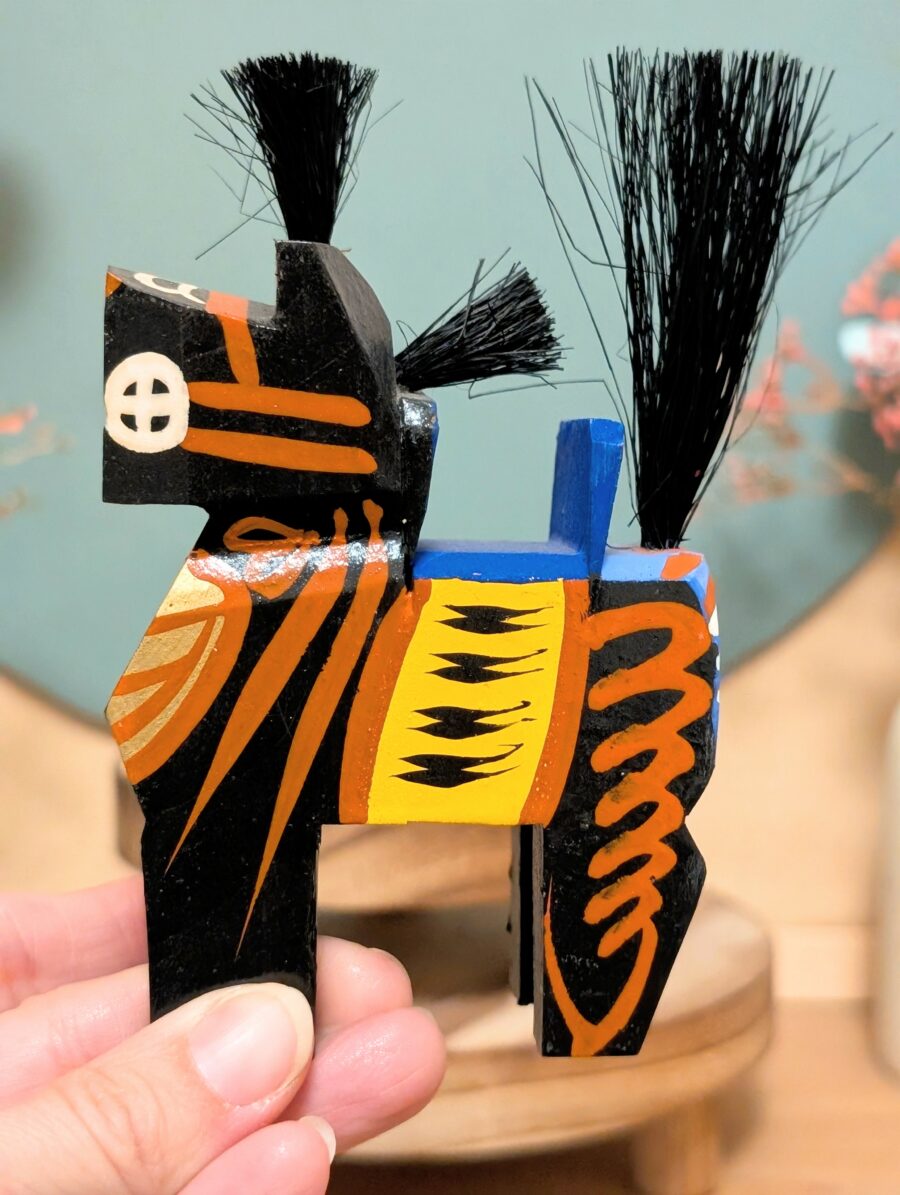 Découvrez ce magnifique cheval en bois japonais, une pièce artisanale pleine de caractère et de poésie, parfaite pour apporter une touche d’authenticité et de bonne augure à votre intérieur.