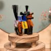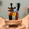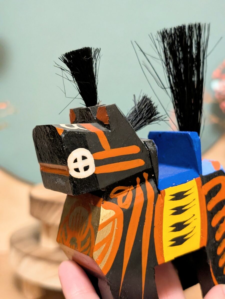 🔹 Chaque facette de ce petit cheval a été sculptée à la main dans un bois noble, puis délicatement peinte avec des motifs géométriques et des arabesques.