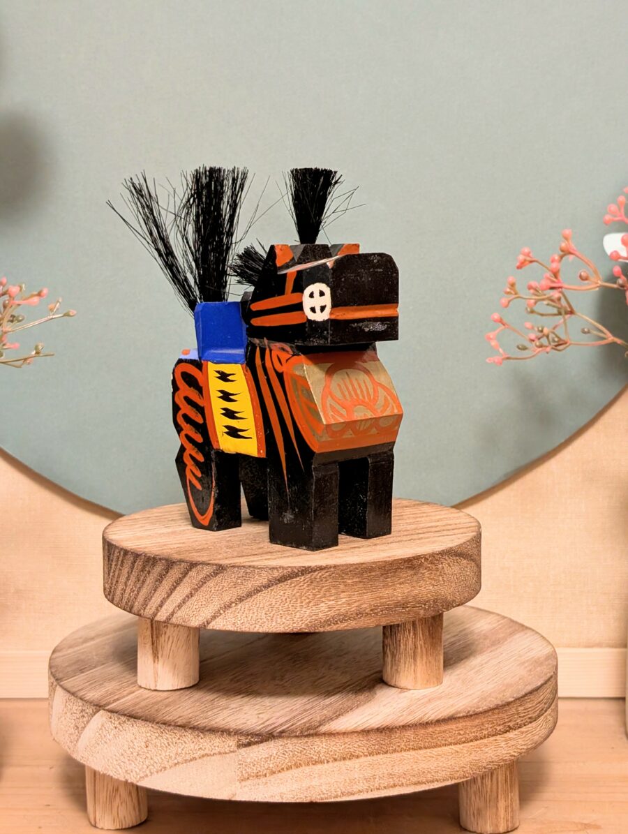 Depuis l’Antiquité, le cheval occupe une place privilégiée dans l’imaginaire et le rituel japonais : messager des kami (divinités) dans les sanctuaires shinto, il est aussi porte-bonheur pour la réussite et la vitalité.
