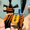 🔹 Son pelage noir profond sert de toile de fond à ces motifs colorés, tandis que de véritables crins – fixés à la queue et à la crinière – lui donnent vie et mouvement.