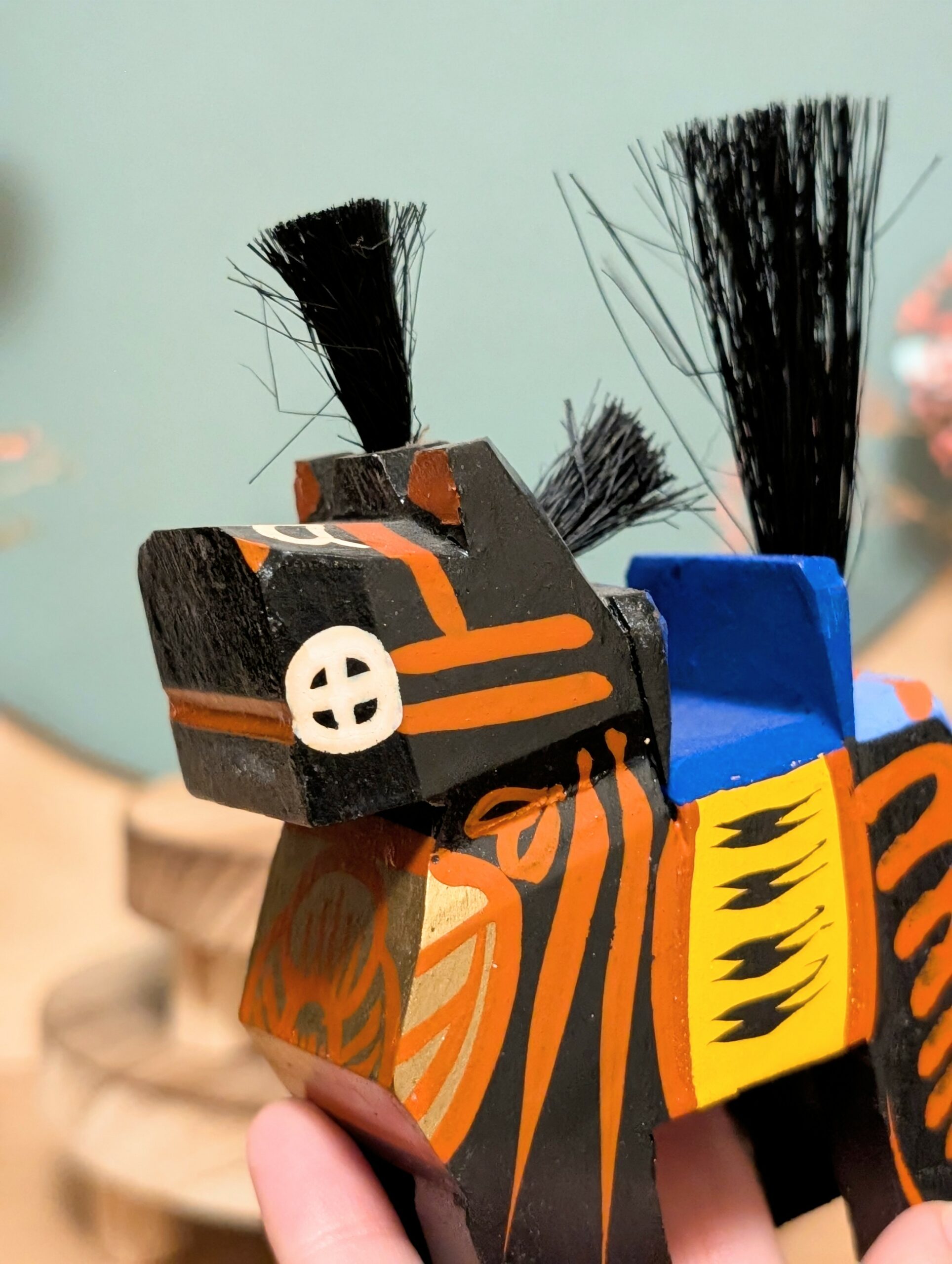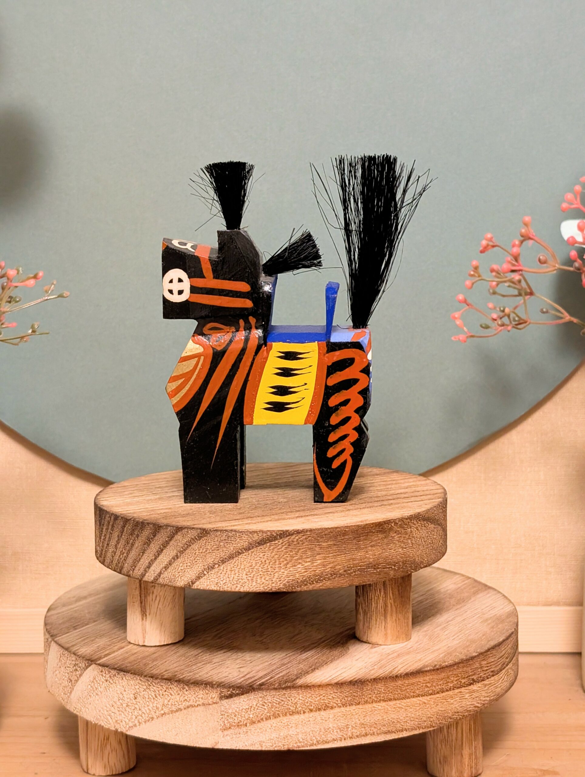 Découvrez ce magnifique cheval en bois japonais, une pièce artisanale pleine de caractère et de poésie, parfaite pour apporter une touche d’authenticité et de bonne augure à votre intérieur.