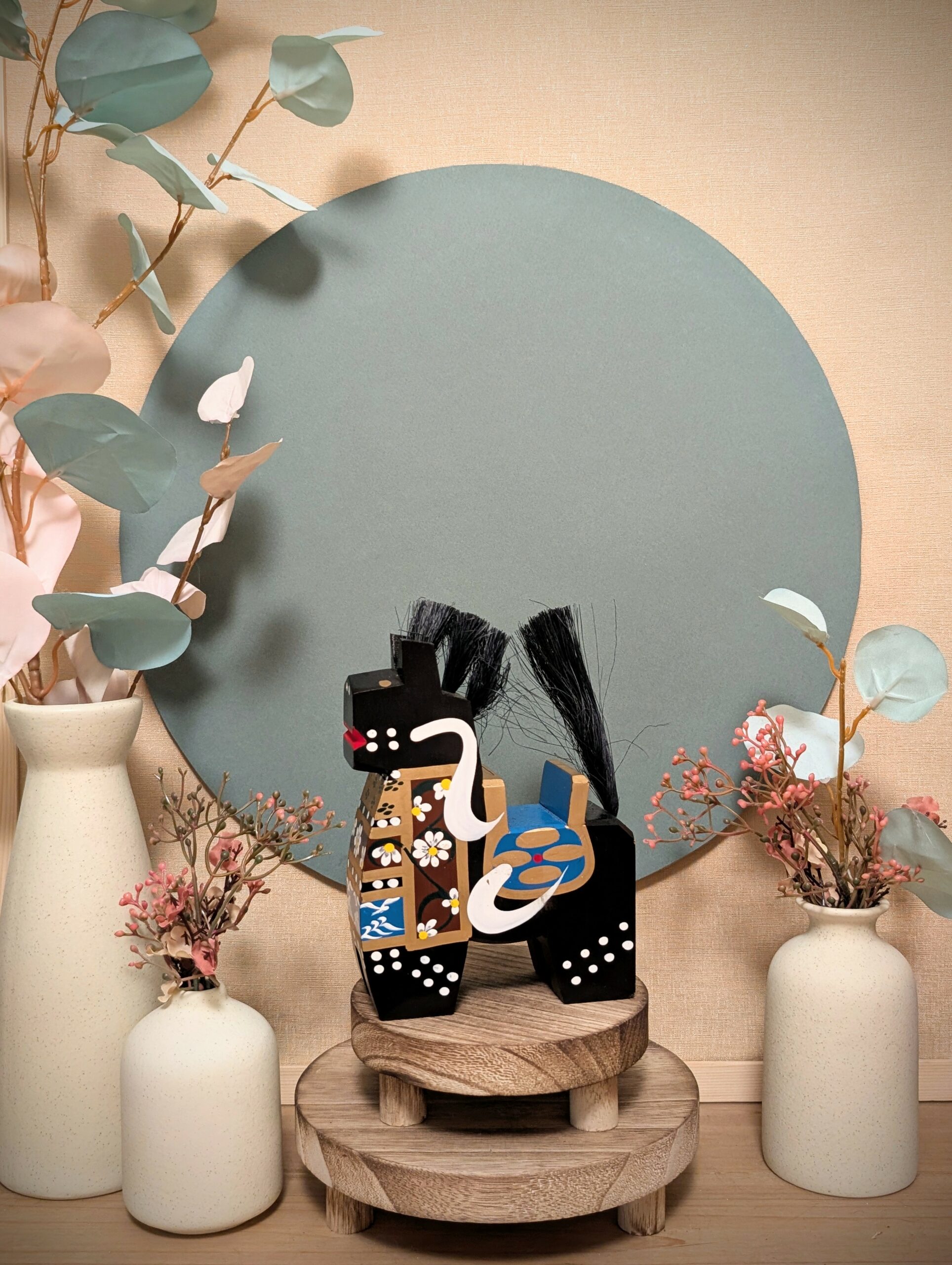 Découvrez ce magnifique cheval en bois japonais, une pièce artisanale pleine de caractère et de poésie, parfaite pour apporter une touche d’authenticité et de bonne augure à votre intérieur.