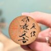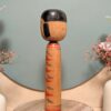🔹 Cette poupée se distingue par son visage serein et souriant, typique de la douceur des Kokeshi Hijiori, et par la finesse de sa chevelure peinte en noir, contrastant avec le bois naturel du visage.