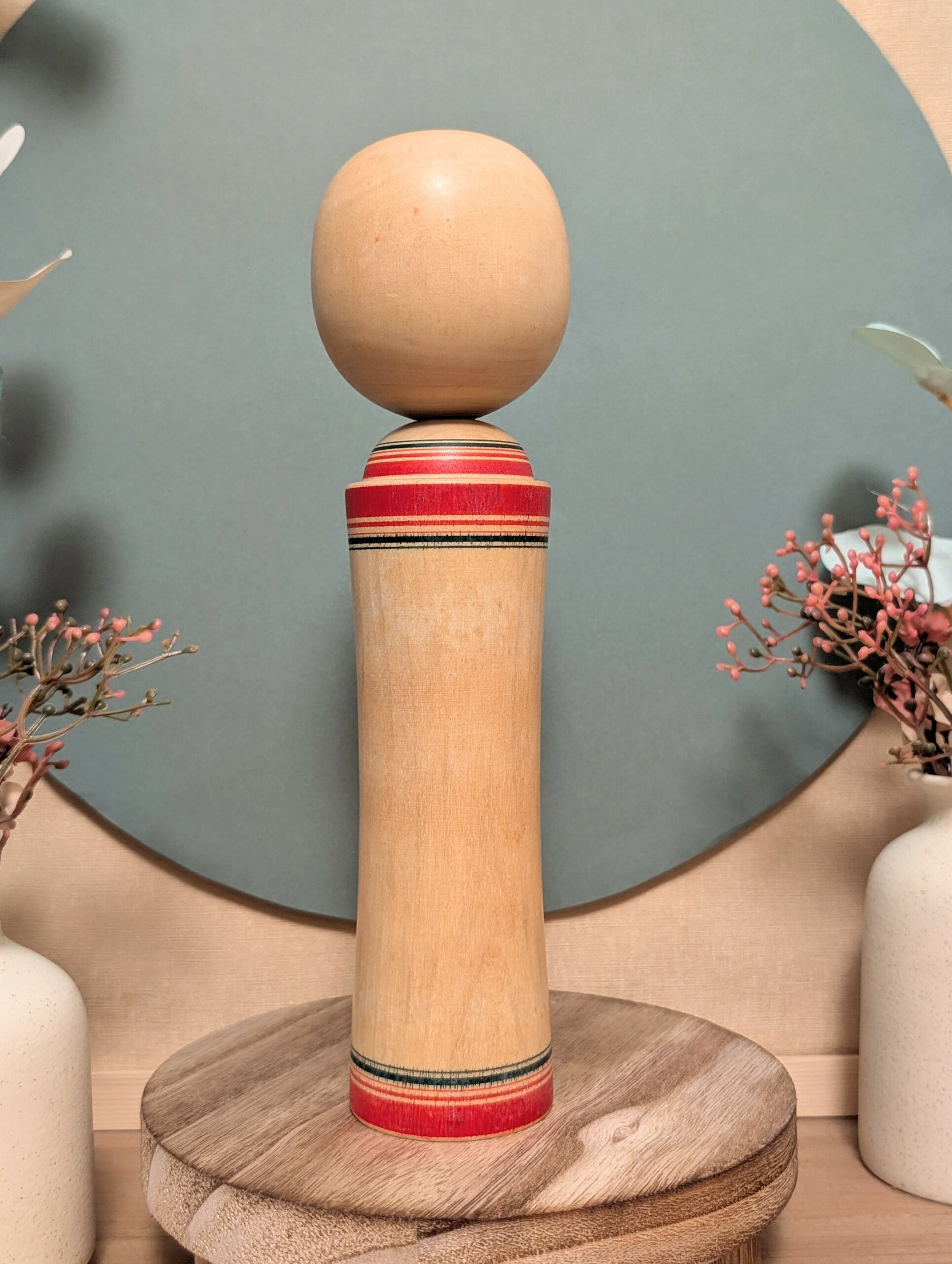 Cette élégante Kokeshi traditionnelle de style Naruko est l’œuvre du maître artisan Chōichi ITŌ.