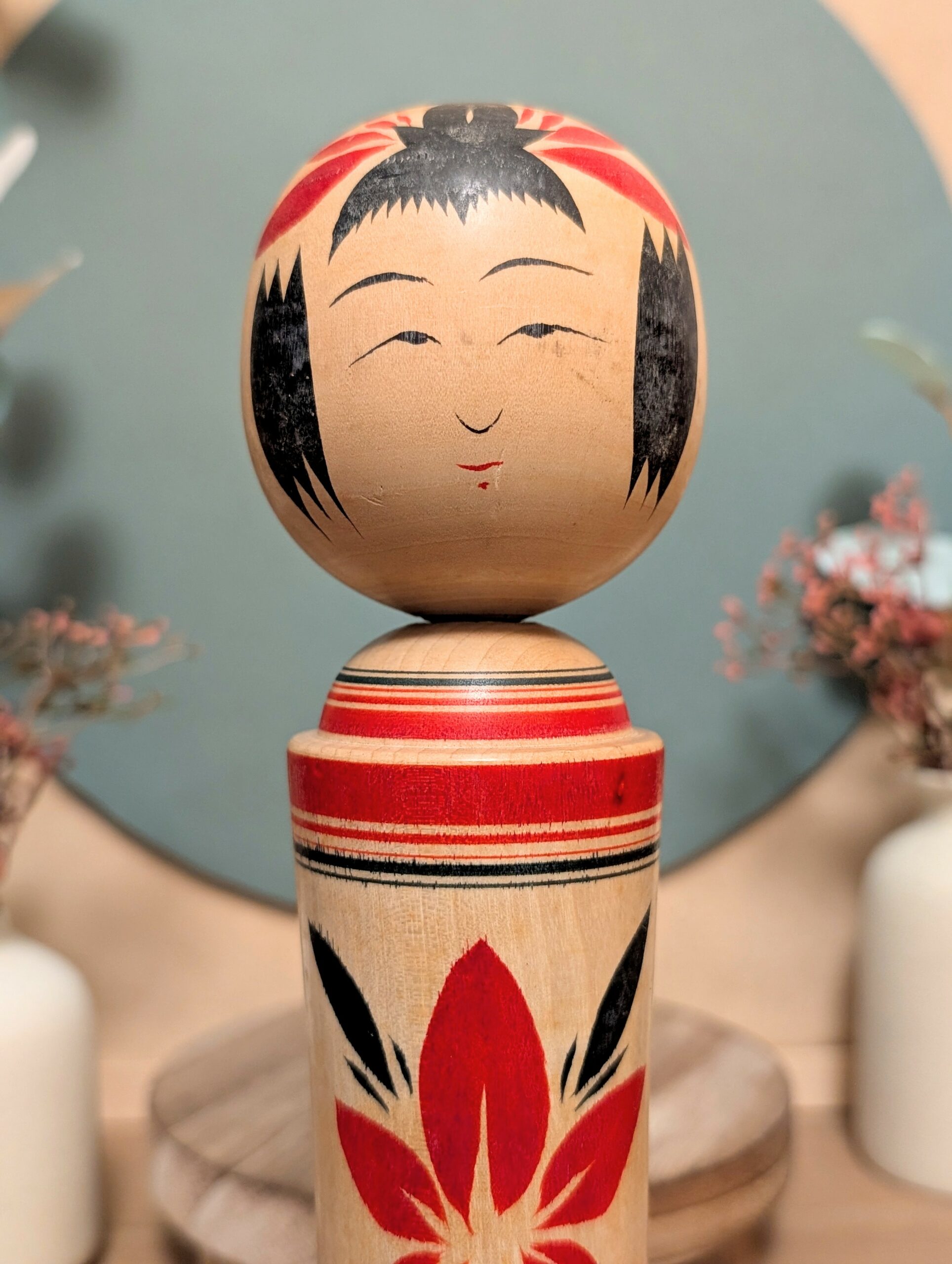 Cette Kokeshi, en très bel état de conservation, représente un magnifique exemple du savoir-faire traditionnel japonais, entre simplicité, élégance et mémoire des gestes anciens.