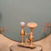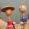 🔹 Ces deux figurines en bois tourné et peint sont fixées sur une base en bois brut.
