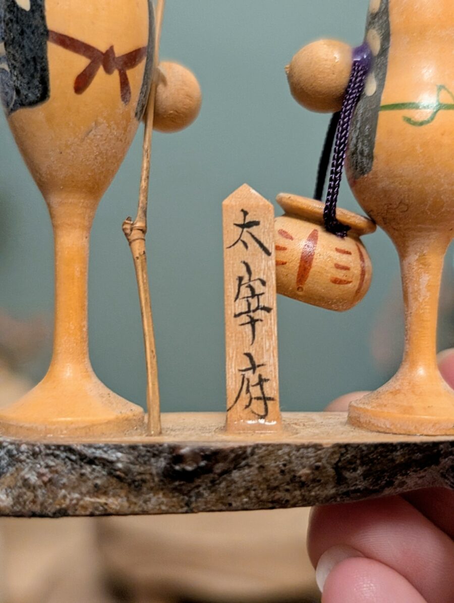 🔹 L’inscription sur le petit panneau en bois est 太宰府 (Dazaifu), qui désigne une ville historique située dans la préfecture de Fukuoka, au nord de Kyūshū. Dazaifu est connue pour son sanctuaire Dazaifu Tenmangū, dédié au dieu de la sagesse et des études, Sugawara no Michizane, ainsi que pour ses paysages traditionnels et ses souvenirs artisanaux.