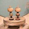🔹Ces deux figurines reprennent une forme originale rappelant de petites lampes ou brûle-parfums, avec un corps élancé et une tête surmontée d’un tenon cylindrique.