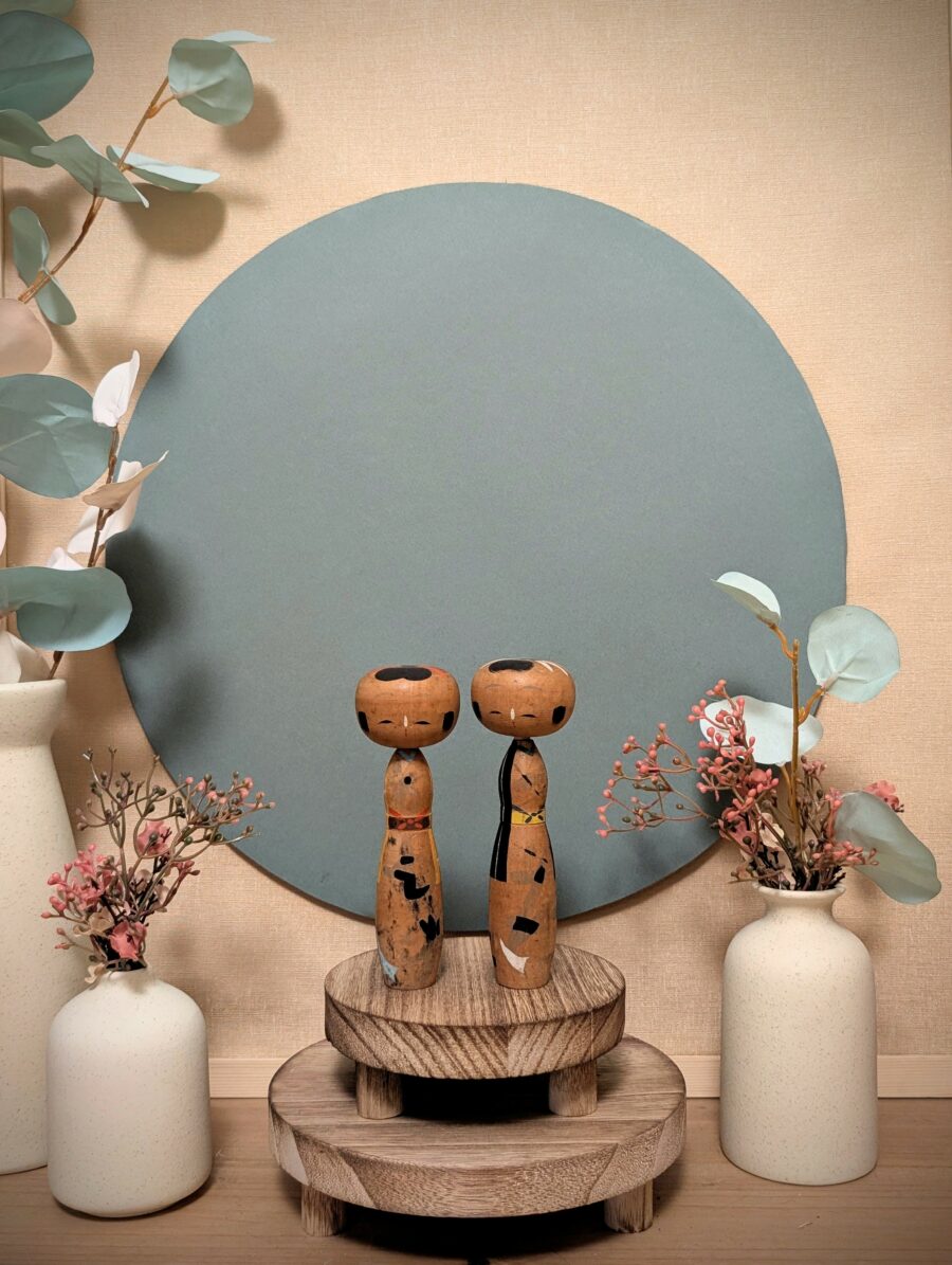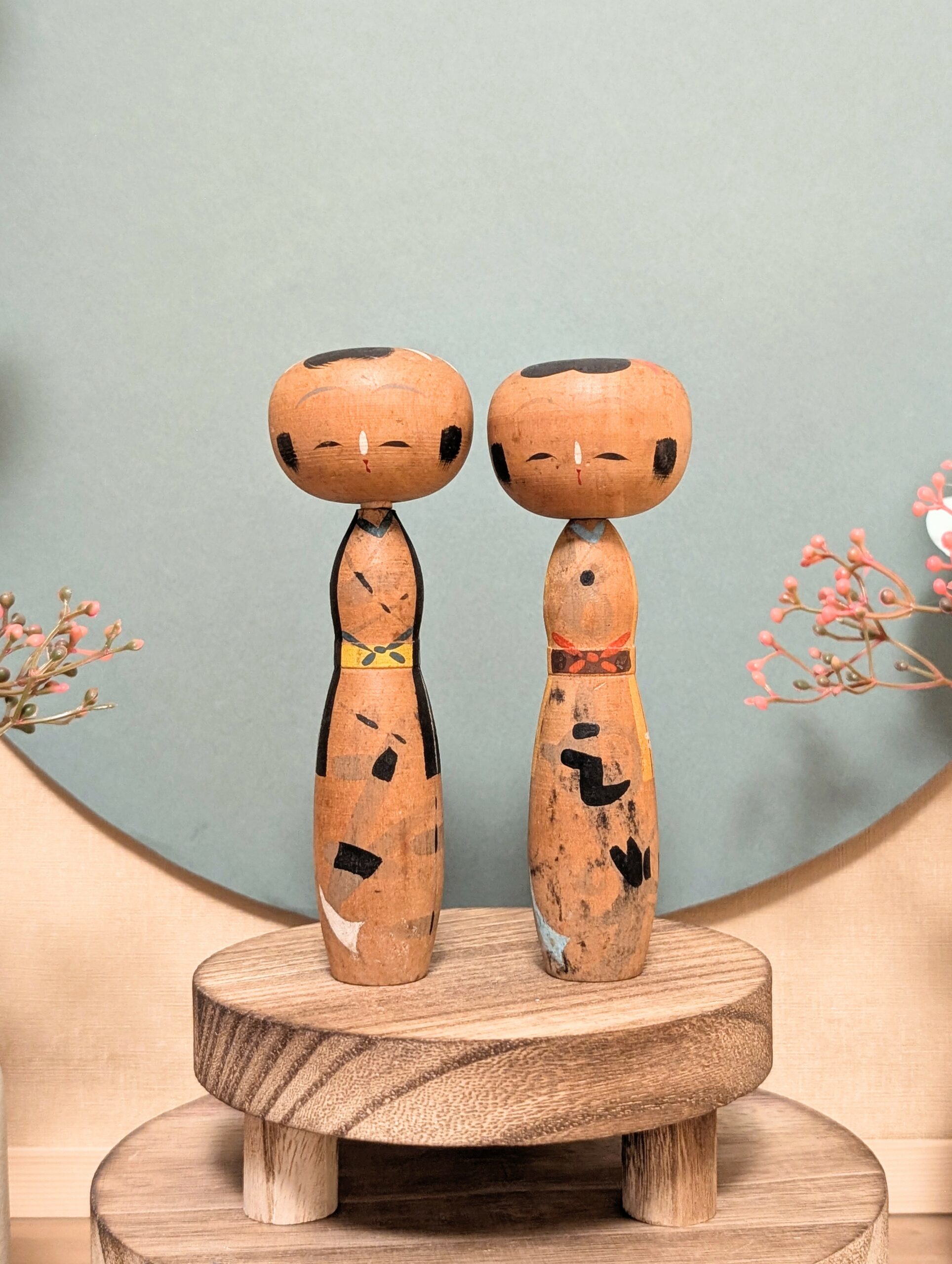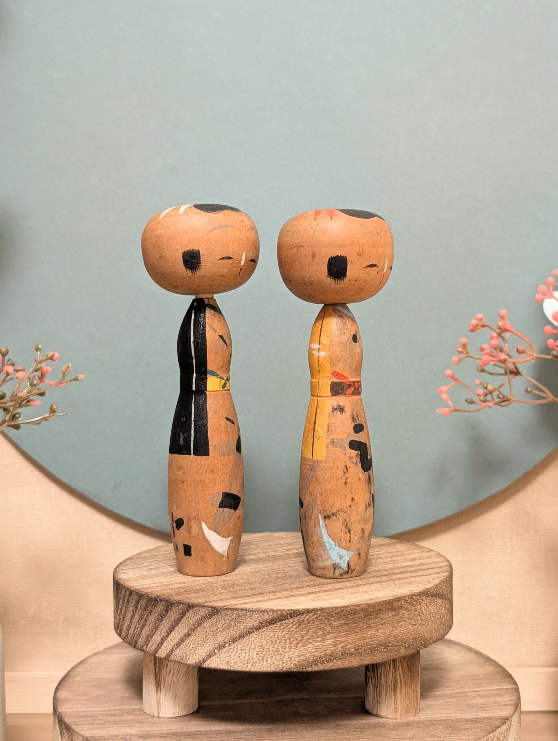 Parfaites pour les amateurs de Kokeshi, de décoration japonaise ou de pièces de collection uniques ! Ce duo dégage une belle douceur et s’intégrera à merveille dans un intérieur inspiré par le Japon ou le wabi-sabi.