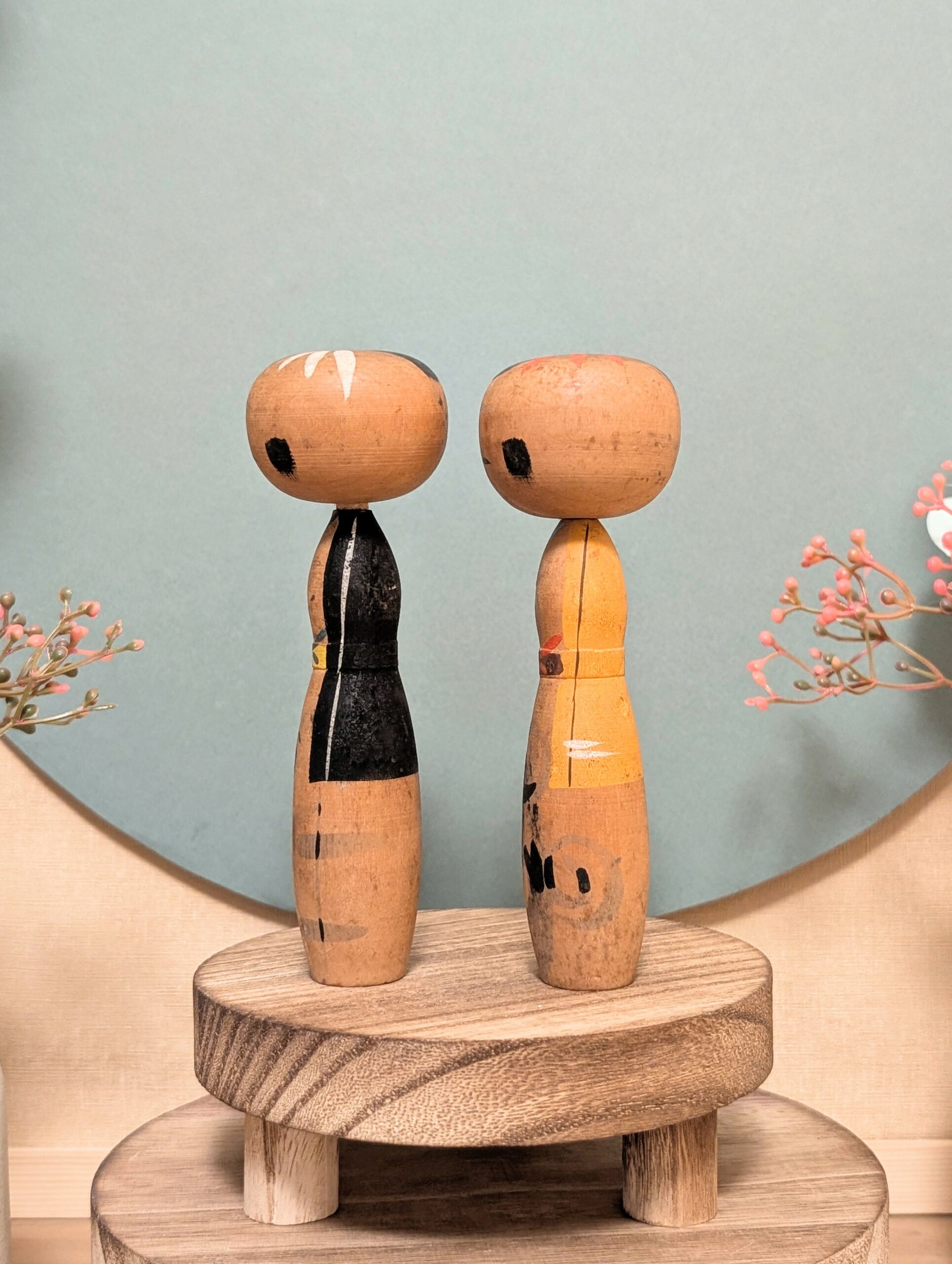 Parfaites pour les amateurs de Kokeshi, de décoration japonaise ou de pièces de collection uniques ! Ce duo dégage une belle douceur et s’intégrera à merveille dans un intérieur inspiré par le Japon ou le wabi-sabi.