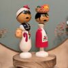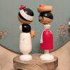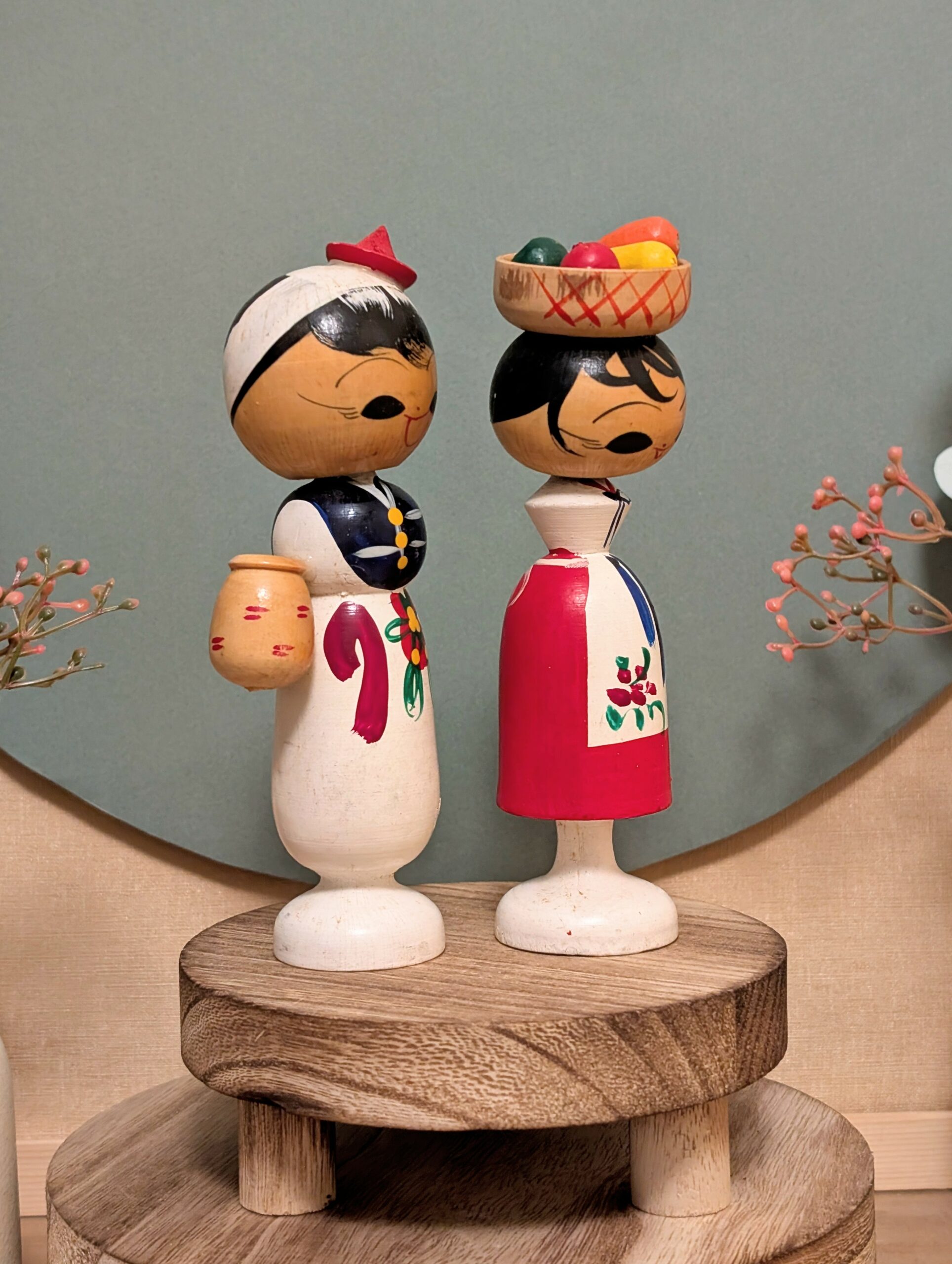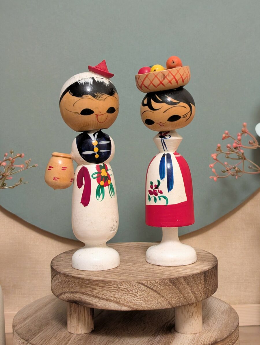 Paire de poupées en bois peintes à la main, style folklorique coréen — reçues dans un lot importé du Japon.