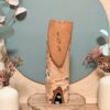Cette Kokeshi Omiyage a un design original qui met en valeur l’aspect naturel du bois avec l’écorce apparente, ce qui lui donne un aspect « brut » ou « rustique ». Elle représente une “Yukinko” (雪ん子) qui signifie “enfant des neige”. Le bois représente son petit manteau d’hiver.