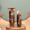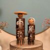 🔹 Leurs têtes lisses surmontées d’un petit chapeau conique et d’un foulard, arborent un visage peint à la main où sourires et yeux plissés traduisent une joyeuse sérénité.