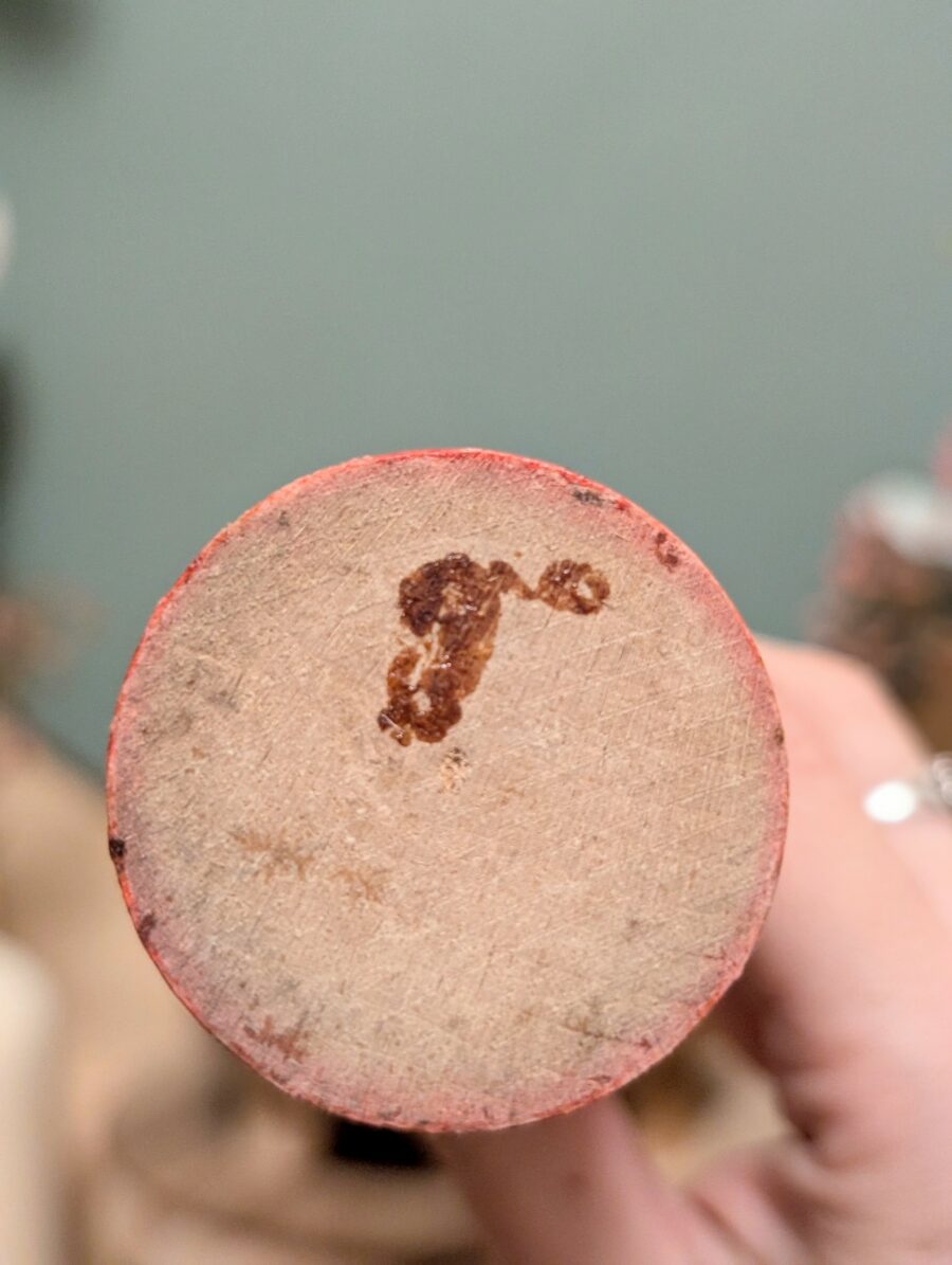 🔹La pièce a visiblement subi des dégâts liés à l’eau au cours de sa vie : la peinture s’est diluée et les inscriptions sont partiellement effacées, donnant au décor un aspect flouté et patiné.