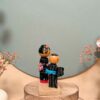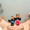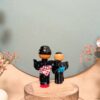 🔹Le personnage de droite porte un Yukata assorti, rehaussé d’une ceinture rouge décorée d’inscriptions blanches et d’un obi à carreaux.