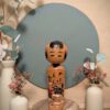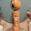 🔹 La Kokeshi présente un visage doux et minimaliste, coiffée de motifs noirs stylisés.