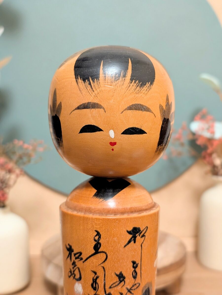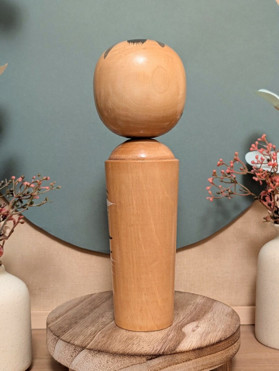🔹 Son style élégant et épuré est typique des Kokeshi modernes réalisées à partir de l’après-guerre, mélangeant tradition et expression artistique plus libre.