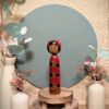 🔹Son visage délicatement peint présente un léger sourire, tandis que sa chevelure noire encadre harmonieusement le haut de la tête, rehaussée d’un motif floral rouge.