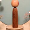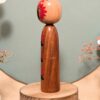 Charmante Kokeshi japonaise de style Shingata (transitionnelle), reconnaissable à ses lignes épurées et à son expression douce et bienveillante.