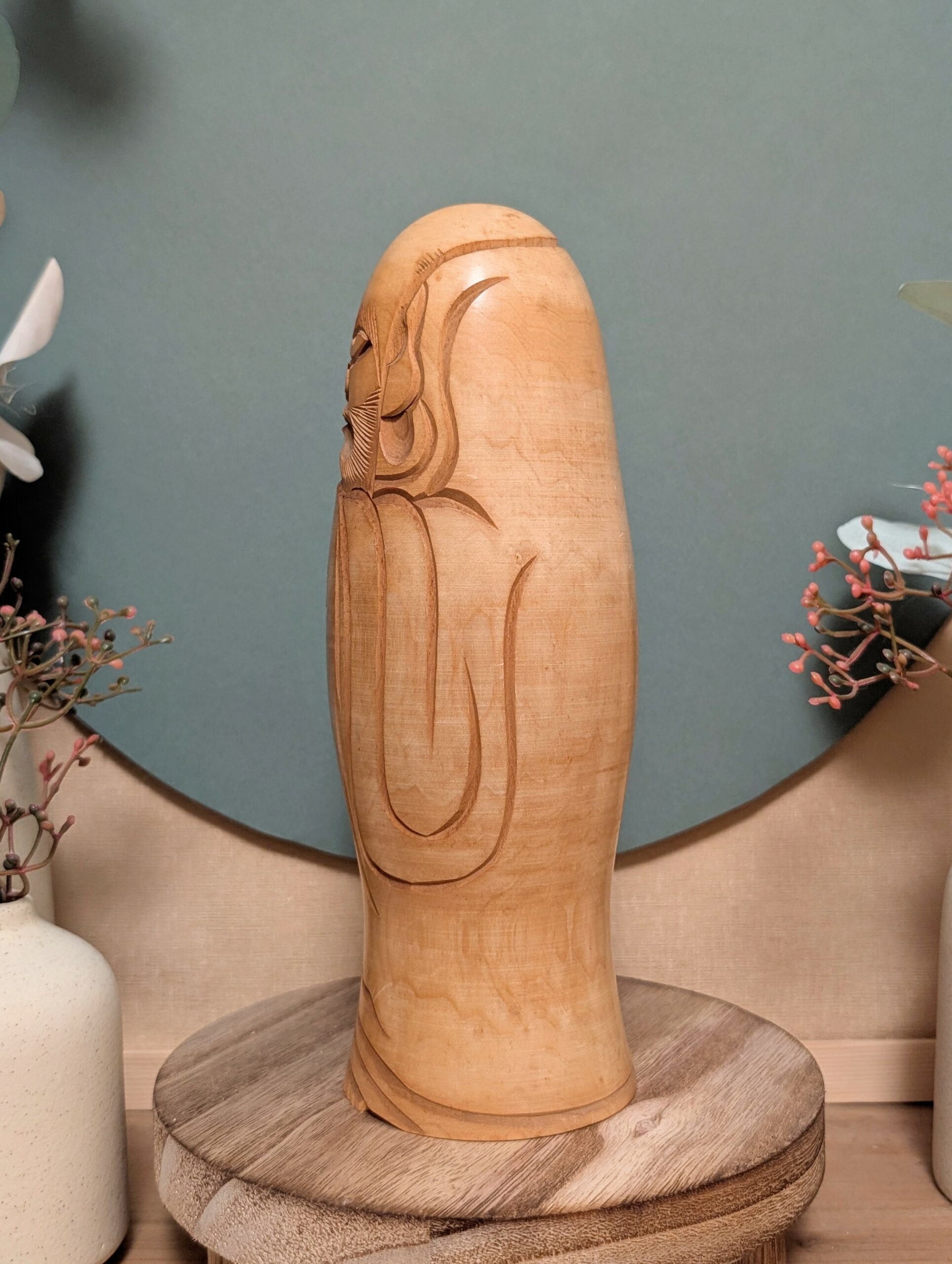 🔹 L’absence de polychromie met en valeur le veinage du bois et souligne le travail du ciseau.