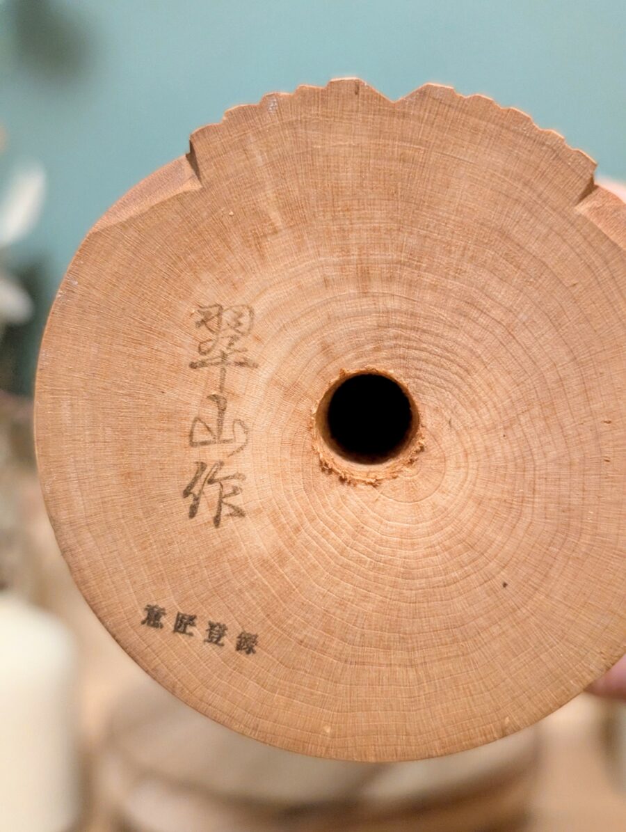 Ses Kokeshi, toujours réalisées en bois de bouleau (Kabanoki) ou de cornouiller (Mizuki), se démarquent par leur : SUIZAN privilégie la beauté naturelle du bois, qu’il sublime par des gravures détaillées. Ses thèmes sont variés et inspirés, allant des masques de théâtre Nō aux figures de Daruma (divinité populaire), en passant par des représentations de démons (Oni), de chrysanthèmes, ou de fleurs d’automne. Ces motifs, souvent symboliques, reflètent une profondeur culturelle et une maîtrise technique qui ont séduit les collectionneurs.