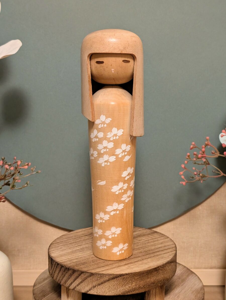 🔹 Réalisée dans un bois clair soigneusement choisi, cette Kokeshi met en valeur le veinage naturel et la douceur de la matière.