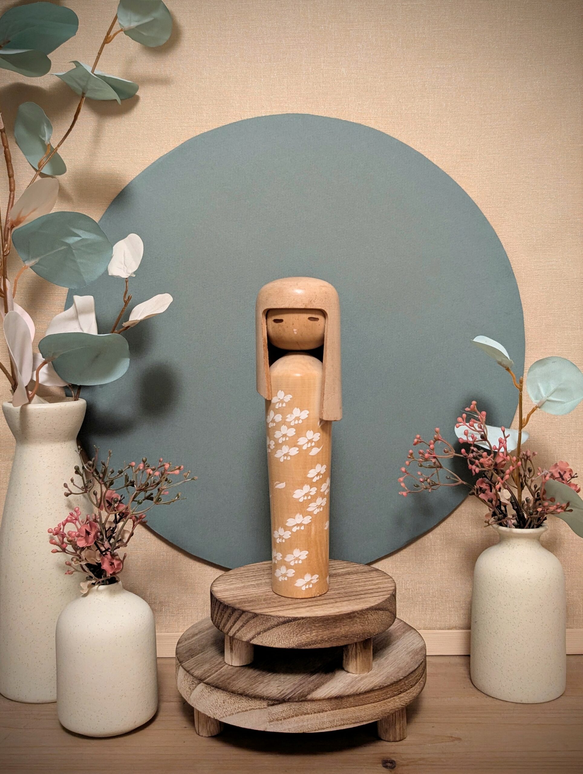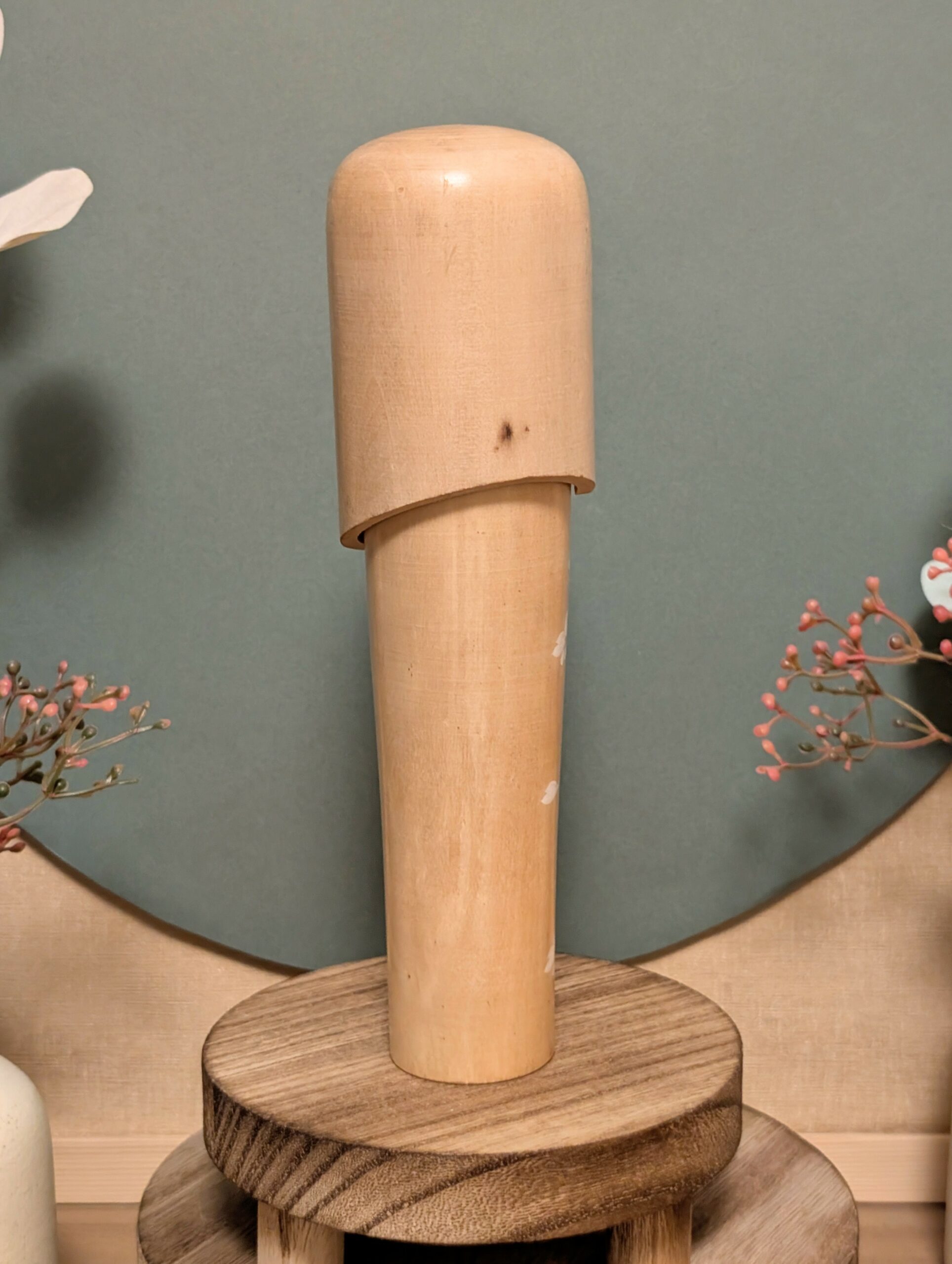🔹 Réalisée dans un bois clair soigneusement choisi, cette Kokeshi met en valeur le veinage naturel et la douceur de la matière.