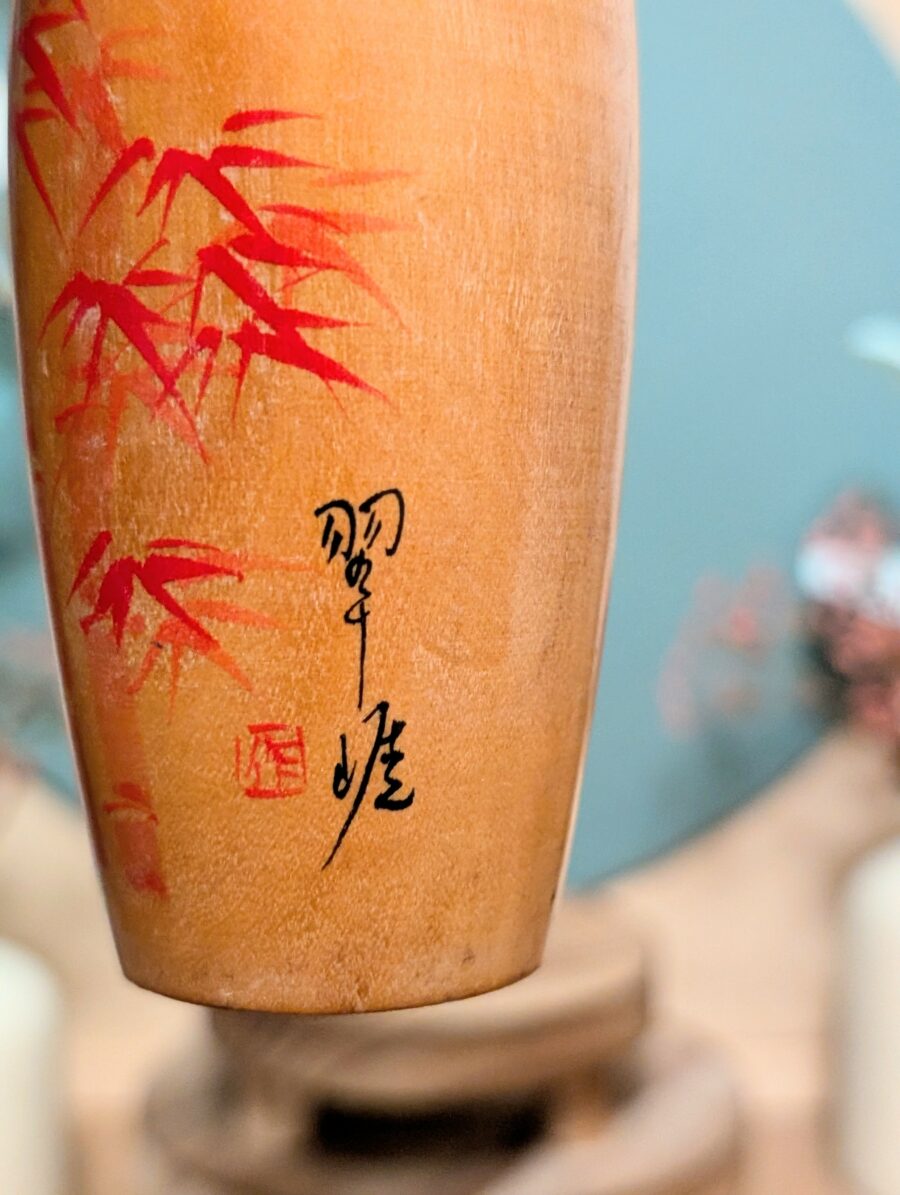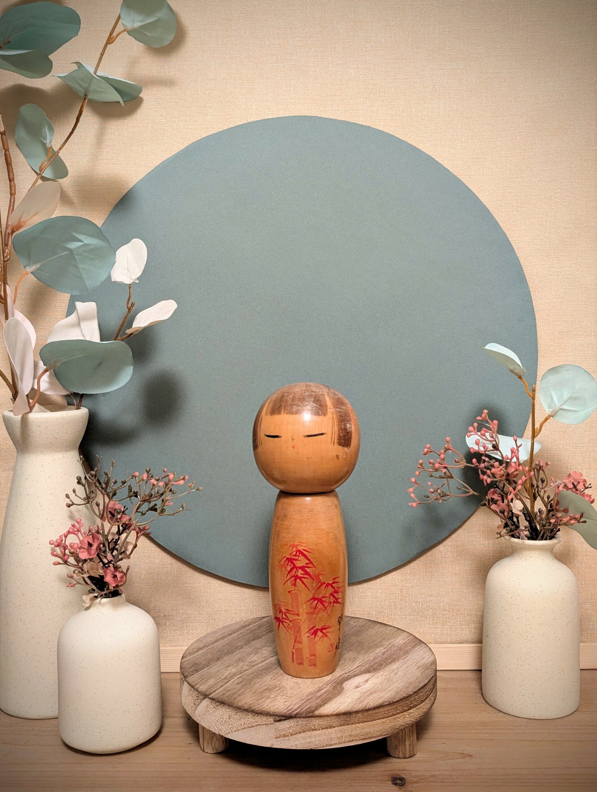 🔹 Le corps est décoré de bambous peints en rouge. Dans la culture japonaise, le bambou (take, 竹) est un motif de bon augure, associé à la force, la résilience et la prospérité. Le choix du rouge, couleur de vitalité et de protection.