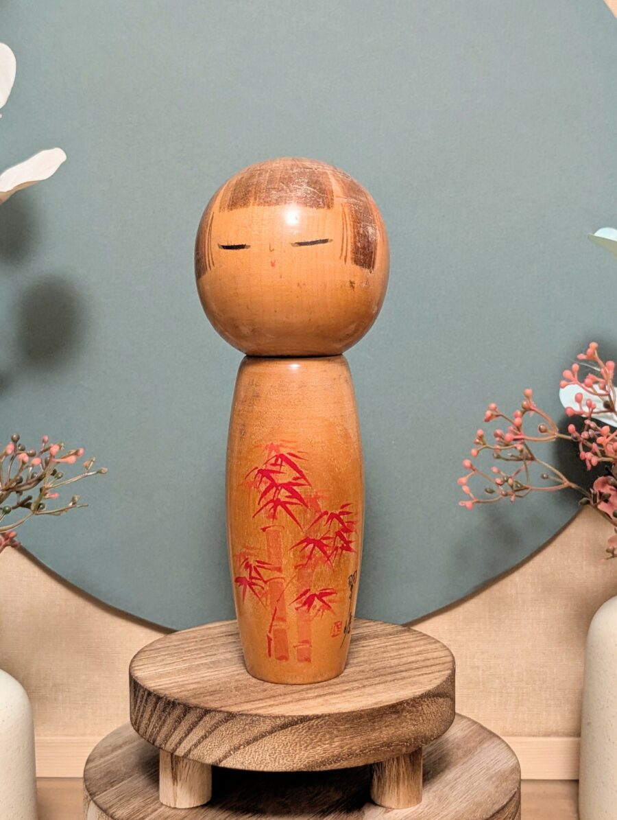 Cette Kokeshi japonaise est une création originale de l’artisan Suigai SATŌ, maître incontesté du mouvement Sōsaku.