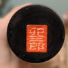 Cette Kokeshi Sōsaku , signée “USABURO”, se distingue par sa silhouette élancée et son bois teinté de sombre qui souligne le veinage du bois.