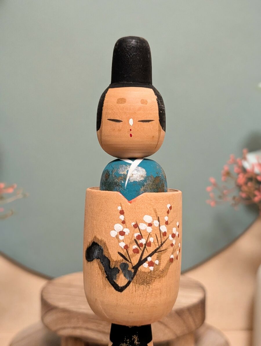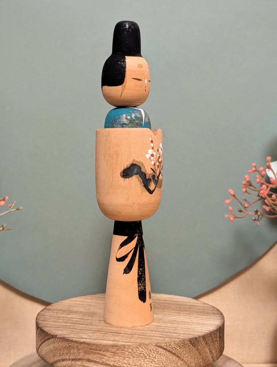Cette pièce incarne l’élégance sobre des créations Sōsaku des années 60, où chaque Kokeshi est pensée comme une œuvre d’art unique mêlant tradition et modernité.