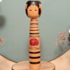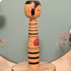 Cette élégante Kokeshi appartient au style Tsuchiyu , l’un des plus anciens et emblématiques styles de Kokeshi traditionnelles, né dans la région de Fukushima. Elle a été réalisée par l’artisan ABE Kazue.