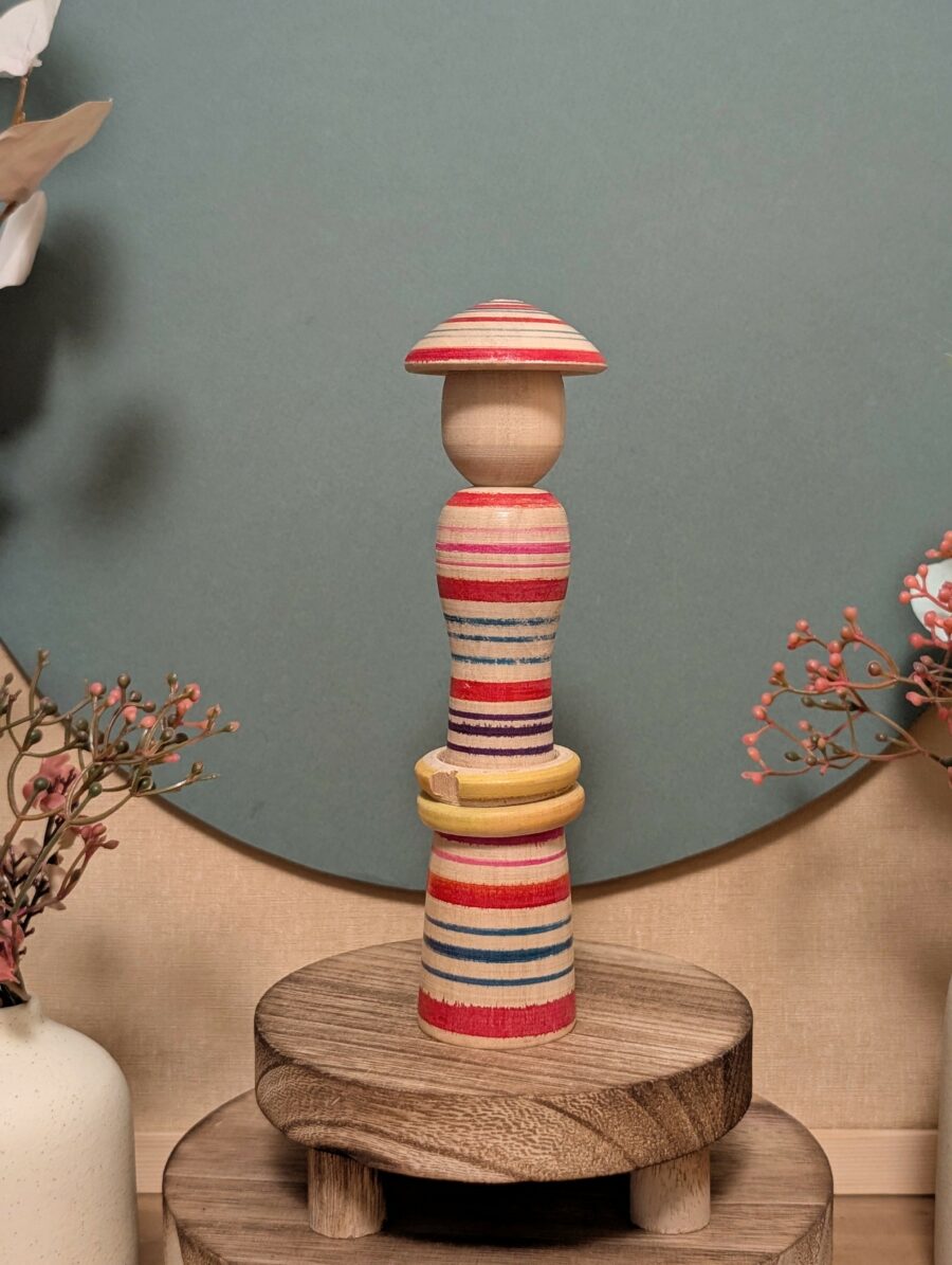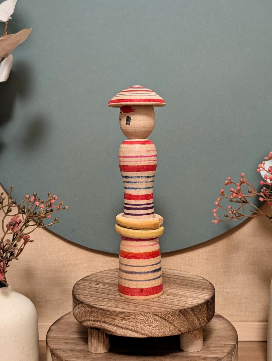 Les Kokeshi sont des poupées en bois traditionnelles japonaises, fabriquées à la main par des artisans japonais qui transmettent leur savoir de génération en génération.