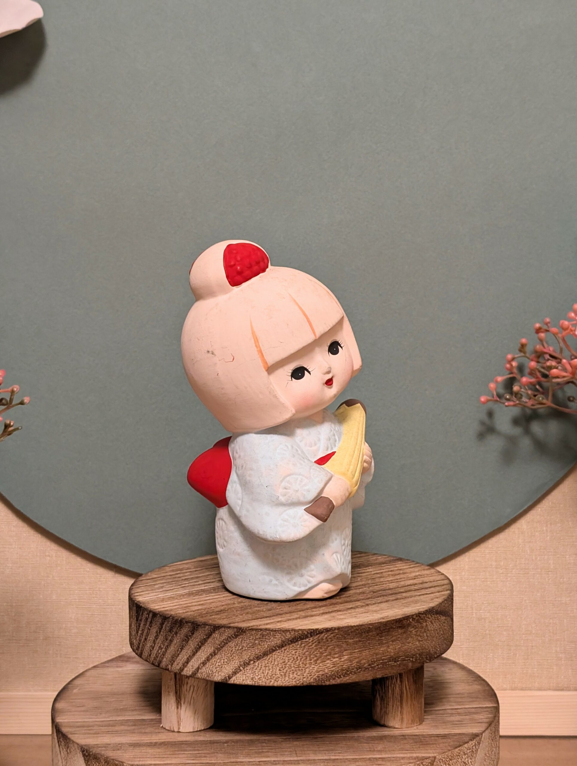 Les Ningyō (人形) sont des poupées traditionnelles japonaises souvent en céramique. La poupée représente un enfant ou une jeune fille aux traits arrondis et au teint très clair.