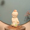 🔹 Le kimono blanc cassé est décoré de fleurs bleues et vertes, ajoutant une touche de fraîcheur à l’ensemble. Cette poupée appartient vraisemblablement à une série décorative des années Showa (1926–1989), période durant laquelle ces figurines populaires mélangeaient esthétique kawaii et tradition japonaise.